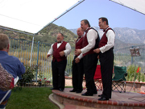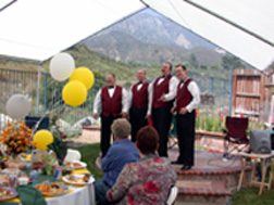 John's wonderful wife, Henni, hired a the quartet named "SOAP" to begin the entertainment. This was quite a treat for John because this group is associated with the Valleyaires, an organization that John sang with thirty years ago. He had performed with a quartet named "The Great Stage Robbery." =)