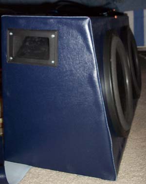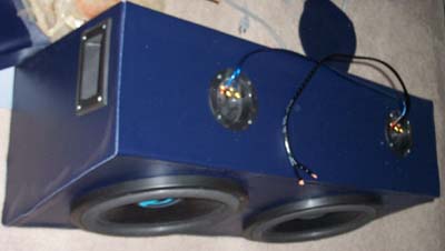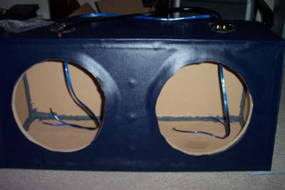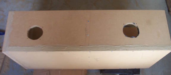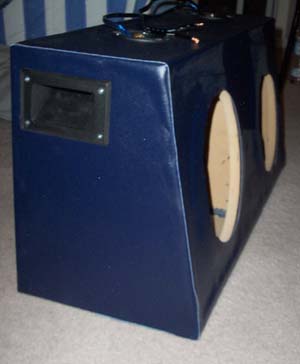 Above - you can see two holes in the top of the box, these two holes are for the speaker terminal cups, and you can also see the handle in the side of the box.