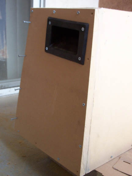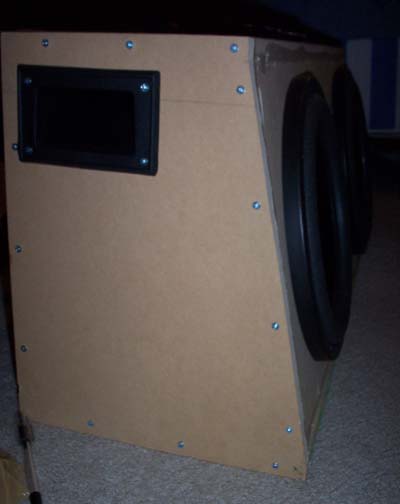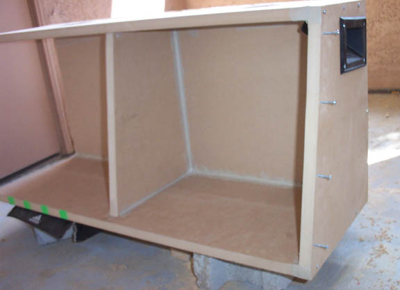 Above - you can see the back side of the door inset handle. I am glad i put this on since this box is very heavy (that is without the subwoofers in yet) and it will just make it easy to transport whenever i need it.
