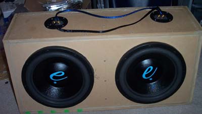 This is just some pics of the making of my box. It's not finished yet as I am planning to cover it with possibly blue vinyl. I don't really like the carpet look so I decided to try out vinyl. It should be an easy process, but since I will be redoing most of my trunk, i need to come up with a nice color, and it seems all the arrows will be pointing to blue, although silver would look nice too. It's roughly 1.0 cu feet double chamber sealed enclosure. Don't be shy on using lots of liquid nail and screws. I almost used 1 1/2 tubes of liquid nail and around 70 screws for the whole box. It was a whole lot of screws.