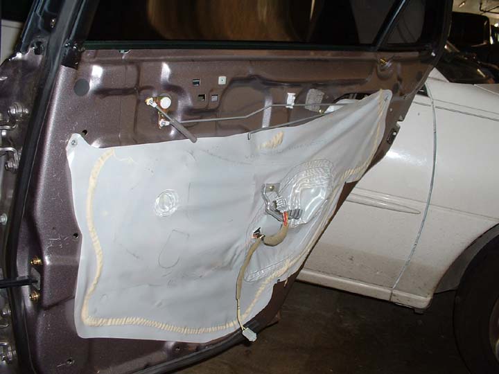 50 Square Feet of Second Skin; door removal tool from Autotoys.com (~$15); Scissors (some cheap one because you will ruin them); Straight edge razors (10 for $1 at Autotoys); Silicon (to reseal the doors, $6 with the gun at Home Depot)); some good cleaning product (Purple Power has been pretty effective, ~$5 at PepBoys); and a roller to smooth everything out. Everything will be self explanatory, i will just post the after pics. But scroll down and take a look for when i did the back doors.