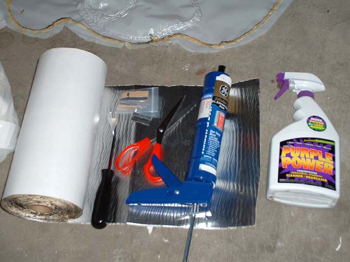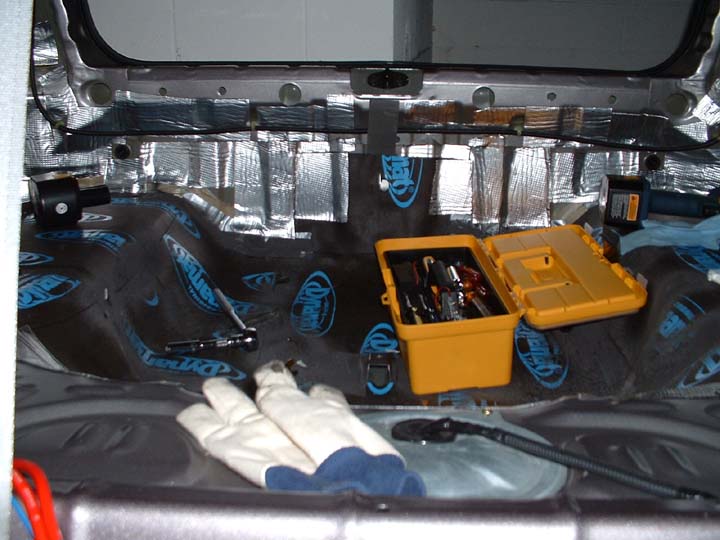 Just to remind you, i already had Dynamat on the trunk, so that's why you would see some Dynamat in the trunk. I add it a "second" layer with Second Skin. To start, you gotta clean up and stuff. Here are the tools your would need: