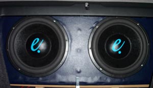 And this is now: Front and back I am currently running these 2 subs with my Audiobahn 2600E, and it's just in the trunk floor since i didn't wanna make the amp rack until i get my amp. As you can see tho, it's secure in the trunk floor and it doesn't move, so that's a plus.