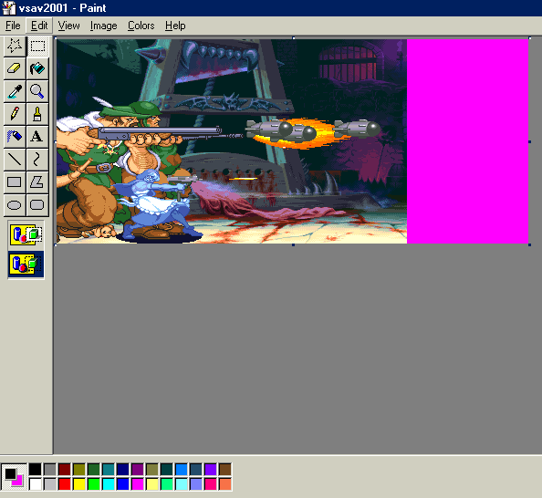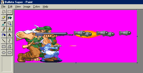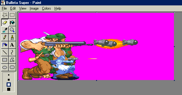 I go back to my B.B. Hood sprite and refill the background with pink, I
