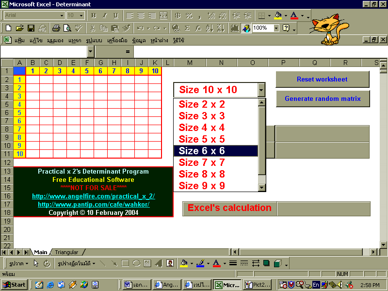6. เลือก Worksheet Triangular เพื่อดูวิธีการหา determinant แบบ Triangular method