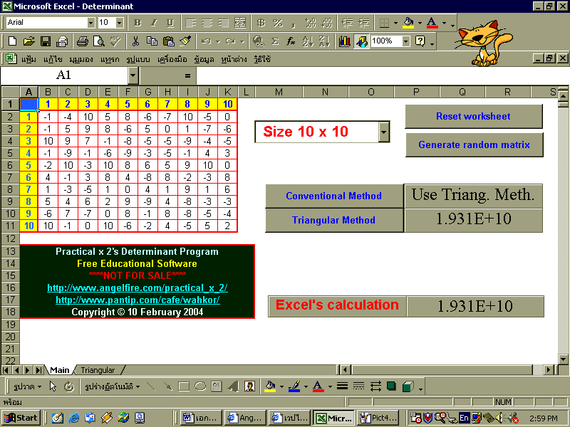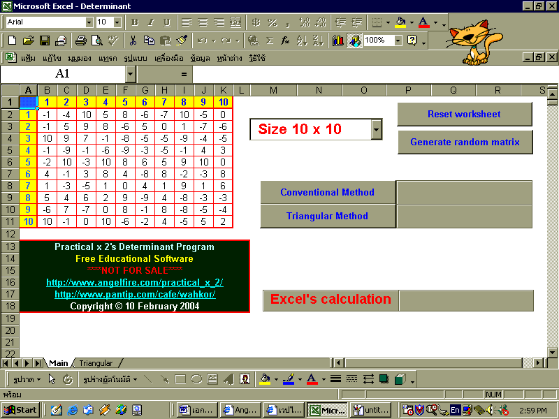 4. กดปุ่ม Conventional method หรือ Triangular Method เพื่อให้โปรแกรมคำนวณค่าดีเทอร์มินันต์