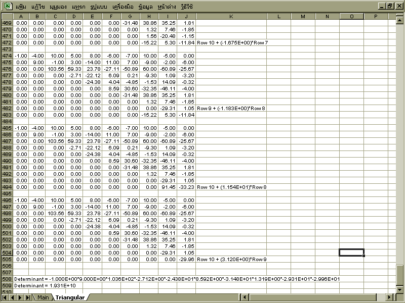 5.2 ถ้ากดปุ่ม Triangular method จะได้คำตอบเปรียบเทียบกับ EXCELs calculation