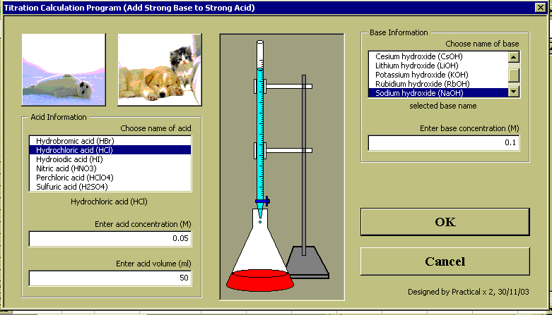 โปรแกรมผมกำหนดค่าความเข้มข้นต่ำสุดของกรดแก่หรือเบสแก่ไว้ที่ 1 x 10-4 M ครับ.
