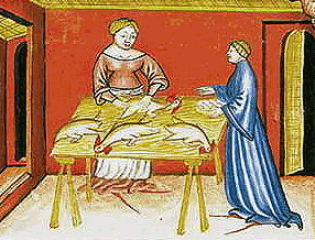 In the Middle Ages, there were generally three meals per day--the breaking of the fast, dinner, and supper (although celebrations called for much more food and drink consumption). Dinner and supper especially consisted of multiple courses of various dishes of similar food. Ale, wine, or beer was generally served at every meal, although the consistency of these drinks was often so thick it could almost be chewed, and not always even tasty.
