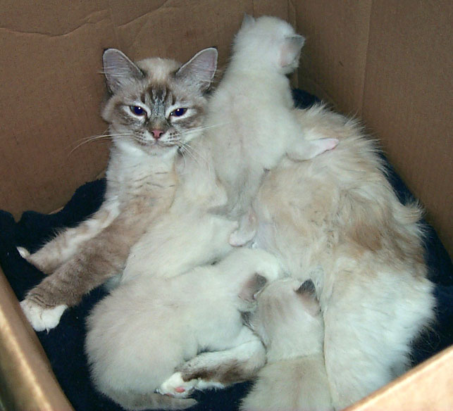 Litter born on August 11, 2003 From : Champion Zelia du Laddak Ssilver-Seal-Lynx-Point) and Ch Taron Xerxes of Elpis (Blue-Lynx-Point) Previous Litters: Pictures of Mandalay baby Adonis