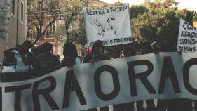 A marcha acabava de se pôr em movimento e já se ouviam slogans como “nazis fora” ou “acção directa”, pelas ruas estreitas do Bairro Alto lá iamos a caminho do Chiado, passando pela antiga sede da P.I.D.E., onde todos nós sabemos o que anos atrás por ali se tinha passado, e mesmo sabendo que já não existe… as frustrações estavam bem presentes.