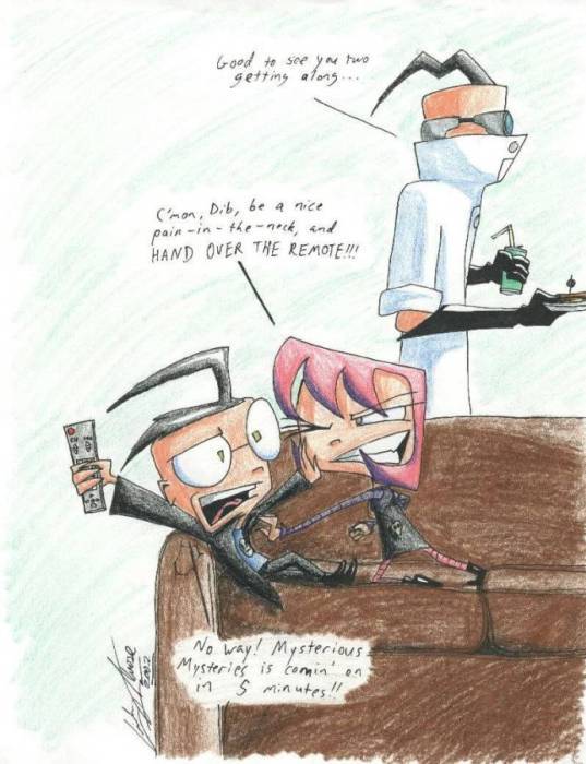 - show the fanart added or changed within the last few artwork updates! - pics that I don't have anymore. Ones with this star are currently residing at Planet Wallywood, the home of "Red"! (if you don't already know what I'm talking about, don't ask.) or living with Richard "I AM ZIM" Horvitz! - fanart that is 100%, totally, completely, entirely, absolutely from my demented little imagination (Or at least 99%. In other words, drawings that the only reason I looked at another pic was to