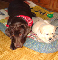 Both girls also are very active in obedience and rally events. There is nothing like the attention and focus of a well trained labrador. Living with labradors has totally convinced me that you get back exactly what you put into these devoted companions.