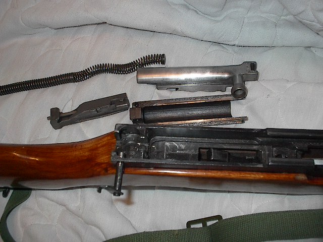 2. after pulling the pin all the way over the reciever cover will slide off. Now you can see why the bolt should be closed imagine getting hit in the face with that spring.