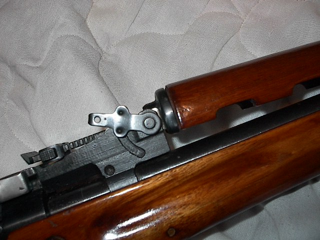 4. Slide the small lever in front of the rear sight forward as shown and pull the gas tube up and off.