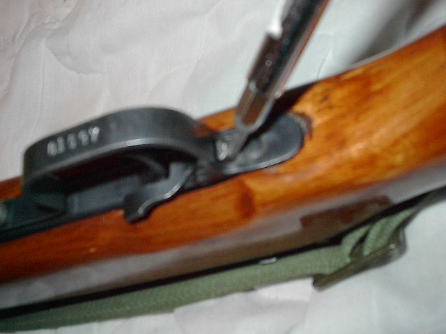 6. make sure the gun is on safe or the trigger assembly will not come out. take a punch and hit it pretty hard and the trigger assembly will pop right out. Now the barrel will come out of the stock.