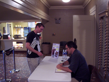 In 2001 I met Bruce Campbell, I thought he was witty and relatively a nice guy. I did get my picture with him but some how it got lost. Finally I got to met him again and thought the trials where worth the wait. 1st there was the traffic. 2nd there was the line of heat in the steaming sun. 3rd the guy convetioning that he can't get all his comics signed (The Worest OF it all I might add).