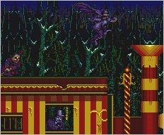 A CT 2: SHRECK'S WONDERLANDIt's an up and down battle. Use your weapons to take out the Tattooed Strongman on the roof - don't try to fight him hand-to-hand. Then fight your way through what's left of Shreck's infamous Department Store. The Red Triangle Circus Gang is here in force, lurking behind every wall, escalator and chandelier. Search for hidden power-ups and watch out for that broken elevator. |