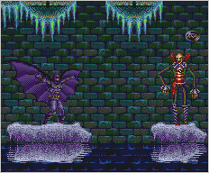 A CT 4: INTO THE SEWERSGo with the flow here. Climb and slide through the labyrinth of pipes while battling the ''sewer rats'' that lurk in the murk. Be ready for attacks from all sides. Once you get to the second complex, swing across the sludge-laden pipes to fight your way out of this polluted ''waste'' land. Clear the maze and face the Penguin's Toxic Slime Canon. |