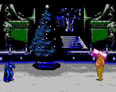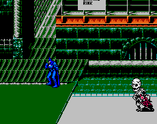 Produced in 1992 by Konami, this game is of coursed based on the second Batman flick, directed by Tim Burton. There is an excellent SNES game with the same name produced by Konami, but if you know it forget it before you play this...they can't be compared. G RAPHICS: the graphics are a mixed bag...on one hand they are nice-drawn, the sprites are large by NES standards and the backgrouds detailed. However, in most cases, the colours chosen for the backgrounds are awful, as you can see from the pics. Come on, green buildings?? Green street??? It is a pity since the graphics are far from being bad-drawn. Some of he levels, though, look good.S OUND: Typical 8-bit action game music. Of course it has nothing to do with the film. The SFX just do their job. |