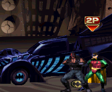 At first glance, someone would say that it is a Final Fight rip-off, like Batman Returns for SNES (1993). However, Final Fight (and Batman Returns) are godly compared to it. It has the pseudo-3D setting of the aforementioned games, with the character(s) moving ''in'' and ''out'' apart from left and right. Yes, it is a beat'em up as well, but doesn't have any of the redeeming features of Final Fight. Your character can kick or punch, and perform some ridiculously multiple combos (I have done a combo of 214 hits!). Only three buttons are used, one for punch, one for kick and one for jump. The combos are performed with a movement of the D-pad and the repeated pressing of the kick button. You collect some special offensive gadgets along the way (like batarangs and hooks), but there is no special button for them. You launch a gadget by pressing the punch button, until you have used up your supply. As far as I remember, there are about 10 or 11 levels total, that follow very loosely the plot of the film. The obligatory Gotham City Streets level, the rooftops, the Subway Station, Two-Face's lair, Ritz Gotham, the Batcave and Claw Island. There is also a two player mode, with the two players being able to pick even the same character, so you can see two Batmen fighting the thugs! (Ridiculous, isn't it?). Anyway, the too simplistic gameplay could be even forgiven if the control was responsive. However, batman and Robin are very slow while the enemies very fast and powerful. If a thug starts a combo on one of the players it is almost guaranteed that one ''1-up'' will be lost instantly. Since the control is poor and the enemies fast, there is no time to plan your moves (like in Final Fight), and all you have to do in order to defeat the enemies is to perform combos all the time and power-up as often as possible. Power-up is required to perform multi-hit combos. Another bad thing is the total absence of any special levels with the player in control of a bat-vehicle. What the fuck, would a batmobile stage be soooo much to program? |