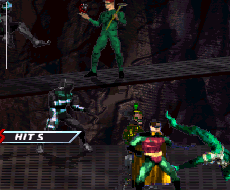 At around the same time Batman Forever for the 16-bit systems was released by Acclaim (September 1995), the company also released an arcade machine programmed by Iguana (the 16-bit was programmed by Probe). Iguana has also made the several versions of NBA Jam. The game was very poor and the little success it had was because it was Batman. Anyway, about a year later this game was released for Sega Saturn and Sony Playstation, in Christmas 1996. At that time Playstation had already some quality titles (like Resident Evil, Tekken 2), and a game that wasn't even decent had no hope. Since the arcade machine upon which this game was based was very poor, the port itself was deemed for doom. It went down history as one of the worst licensed games in video games and another failure for Acclaim. I could whine for hours about how bad this game is, but I will try to give a faithful description. |