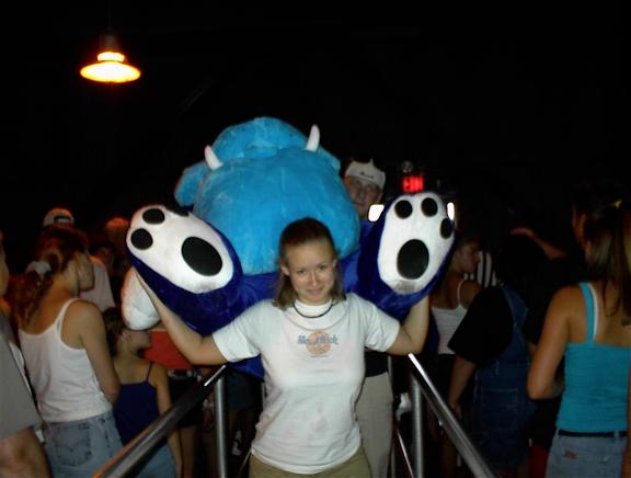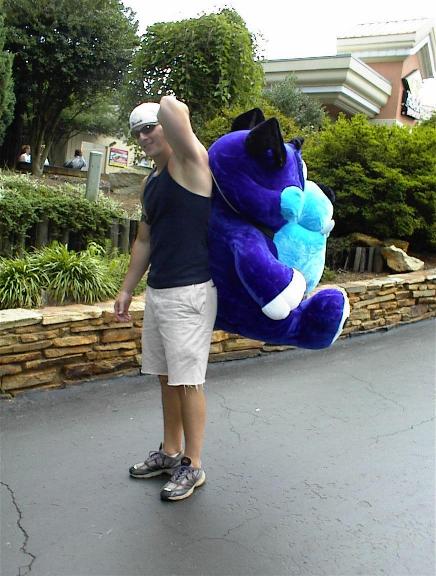 Kelly won this at ringtoss; Larry had to carry it around for the rest of the day.