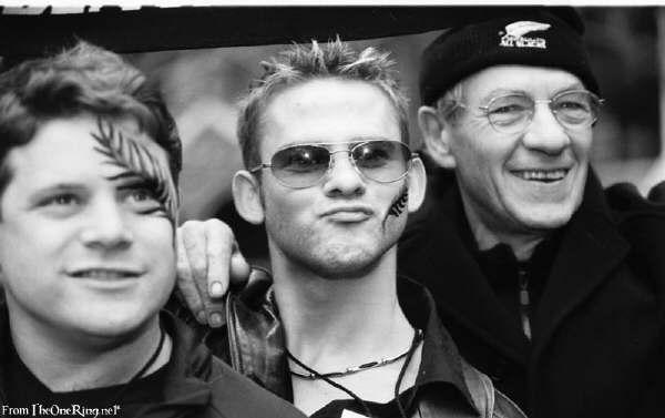 A page honored for the amazing cast who took part in this stunning film. Includes pictures, interviews, and whatever else I can scrounge up. I will try to get as many pics of all the actors but I'm sure it'll be uneven-sorrry, but I hope you like it anyway.I may have fun and add funny captions to some of the pics, so bear with my corney humor :) BTW-The pics are big and may take a min or two to load-sorry but I guess I like detail(?) John Rhys Davies Sean Bean Elijah Wood Viggo Mortenson Billy Boyd Dominic Monaghan Orlando Bloom and a elephant. Sean Astin Dominic and Sean B.- trying to lasser the photographers with their eyes elijah- I told you we shouldn't have brang him out in public like this!! orlando- bleh *drools on himself* dominic-I swaer if you poke me with your fingers Ill bite them off! billy- this is going to be a fun night.. Dominic- I swear if you bite my hand I'll pop you one! Orlando-DIE DIE DIE! *screaming like a nazgul* Elijah-damnit..... Billy-I allways knew he was a canibal... Sean, Dominic, and Ian. neat leave things on their faces. Dominic- whats that smell?! Orlando-*holds back a laugh* Sean- Christ... Lady-did you guys smell that....? Dominic- Err smell what.. Orlando- wasn't me, really...Sean how could you?! I'll have links to interviews so check back soon. *NOTE* NONE OF THESE PICS ARE MENT TO BE OFFENCIVE JUST ALL IN FUN! honestly- I think all the actors are awesome, I just am trying to give off a lighter note ;)