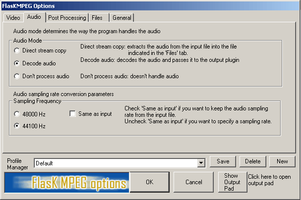 needs to be changed just make sure that Decode audio has been selected then move on to Post processing. |