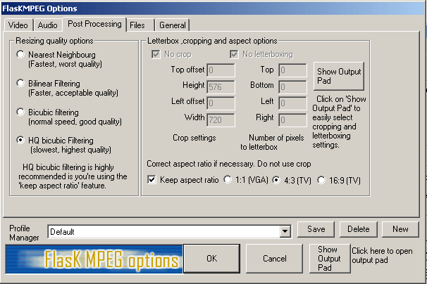 | Nice and simple juat make sure that the HQ bicubic Filtering and the Keep aspect ratio boxes are checked and then on to Files. | ||||||||||||||||||||||||||||