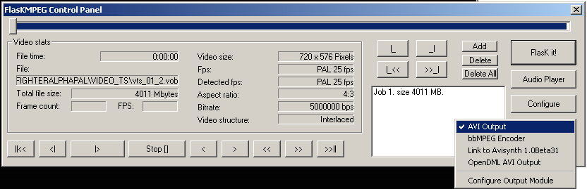 you will need to click on the Select Output icon and select AVI Output if it isnt already selected. |