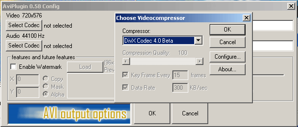 | After choosing the video codec you will need to click on the configure button. All you need to do here is to enter the bitstream number in the Outstream Video Bitstream box. (The number i told you to note down earlier with the Bitrate Calculator). | ||||||||||||||||||||||||||||