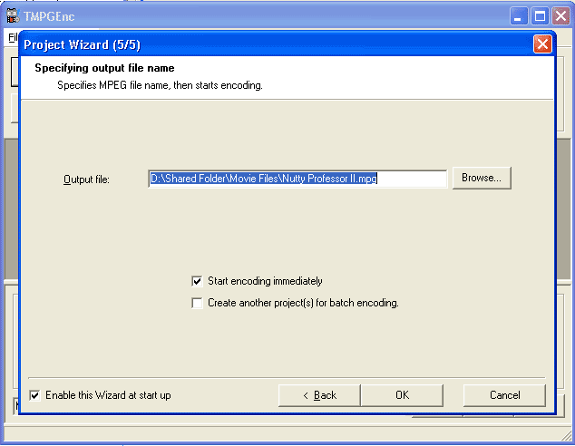 would like the finished VCD to be stored. Click on OK |