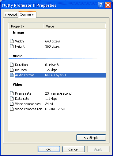 Firstly you will need to downoad TMPGEnc. You now need to find out whether your AVI file is either PAL (European) or NTSC (America and Japan). To do this right click on your AVI file and select "properties" then go to the "summary" or "detailed" tab and look in the "Video Format" section. The "23 Frames/Second" (Actually its 23.976 to be more precise) is the frames per second property of the AVI file. 23/23.976 = NTSC, 25 = PAL and 29.97 = NTSC. |