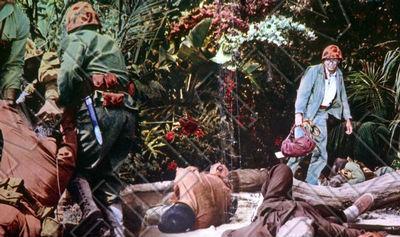 Director of Photography Harold Lipstein (“Hell is for Heroes”) does a fantastic job with the Pacific locations. The steamy tropical jungle truly comes alive, especially during a fabulous scene in which a monsoon sweeps over the island. Sinatra’s direction lacks flair, and most of the action sequences are straightforward and bland. The firefight revolving around a Japanese boat is also grim and gritty; and the final confrontation between the Japanese and Americans really delivers, mostly because of the blatant anti-war message which comes about 30 seconds after the shooting stops.