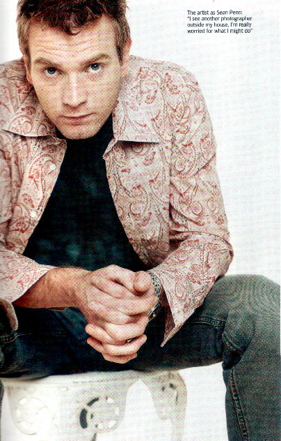 "So anyway, he's a c---!" Ewan McGregor leans back in his chair, mouth full of pizza, pauses and then guffaws, scattering shards of pepperoni skin. This curse comes at the end of a sustained and righteous rant; it's a deflating summation, the bathetic "c---." And a deft touch. He means it, though. "He is," says McGregor, recovering. "He really is." The c--- in question is the editor of a kick/kiss celebrity-a** weekly magazine published in Britain. Just before our interview, said magazine published pictures of Ewan's second child, a 4-week-old girl -- "My new daughter; my baby, f***ing close up" -- despite a request from McGregor's publicist that they resist the urge to do so and, McGregor says, an assurance from the editor that they would not. Ewan is not happy. "They just don't give a f---, do they? I'd like to know how he's going to feel on his deathbed, knowing that his sole contribution to the world has been stealing people's privacy. He can put a picture of my 5 1/2 year old daughter [McGregor now has two girls] on the front of a magazine. And I can't do anything about that. I don't want people to know what she looks like. And I don't want her to be bothered with that. She's just a wee girl." Ewan McGregor is famously good-humoured and fun to interview. And he does not disappoint. All this railing is delivered sotto voice in his endearing, easy-on-the-ear accent, almost the exact same one that Mike Myers used for Shrek. And it's regularly punctuated with gags and giggles. But he is tired, and things just seem to have got a little weird and out of control recently. "I'm beginning to despair, and I don't know what I can do. It's not a big deal in the scale of things, but it is my life. If I see another photographer outside my house, I'm really worried for what I might do." He laughs. The image of him pulling a Sean Penn and battering one of the paparazzi with a brick is ridiculous, but you can see that it appeals.
