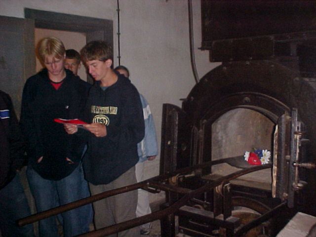 Our tour guides reading the explanation at the crematorium. It was a very somber experience.