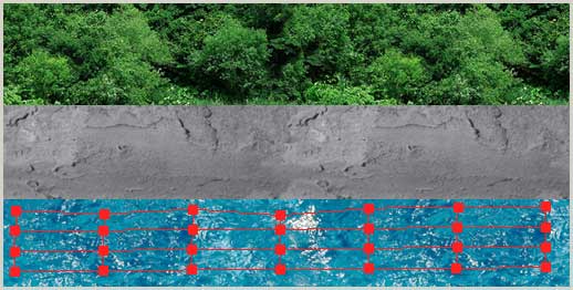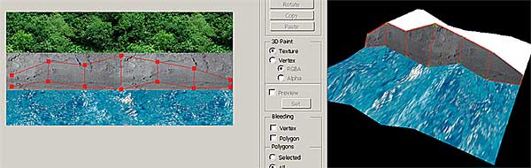 Select the object, and duplicate it as many times as you think you'll need different projections. In this case, we already know that we need 3 projections: one for the water, one for the cliff, and one for the forest. On more complex objects you'll need a little of planning. So make 3 duplicates of the object.