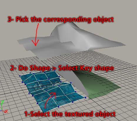 When the 3 textured ojbects are back to their original shape, select them all, and do Model > Effect > GC_Merge+