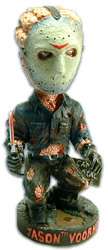 $14.95. This Jason figurine stands about 8 inches tall. Careful, the knife in his right hand is still bloody.