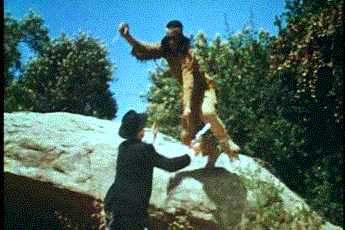 Whew! This whole set up takes about 1/3 of the movie to establish, during which there is a heck of a lot of talking and only a sprinkling of the kind of action one would expect from a 1960's western. Of course, there is a fistfight, a shootout and the obligatory Indian ambush, but these events are short and relatively unimportant to the story, which also includes a pair of dogged, perceptive lawmen and a love triangle. Maria's reasons for wanting to put pulsating artificial brains into human beings are pretty weak, and when she finally does get the thing to work, she doesn't seem to know what to do with it aside from siccing her creation on unsuspecting visitors.