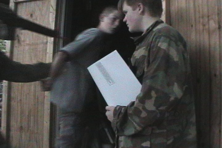 Frasier Westwood (Jimmy Mcmullen) With a metal instrument about to knock out a squad leader (Stephen Langford)