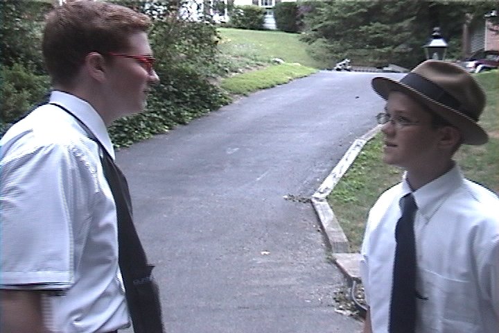 Earl (Daniel Langford) greets Agent Turner (Stephen Langford) to discuss the mission.