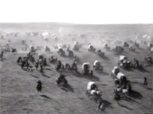 of settlers rush the Oklahoma border, on horse back and in wagons, is
