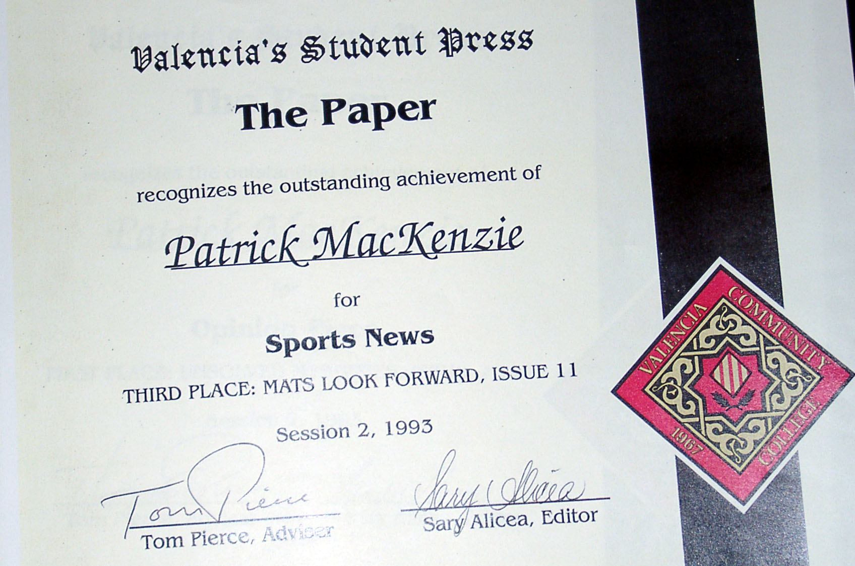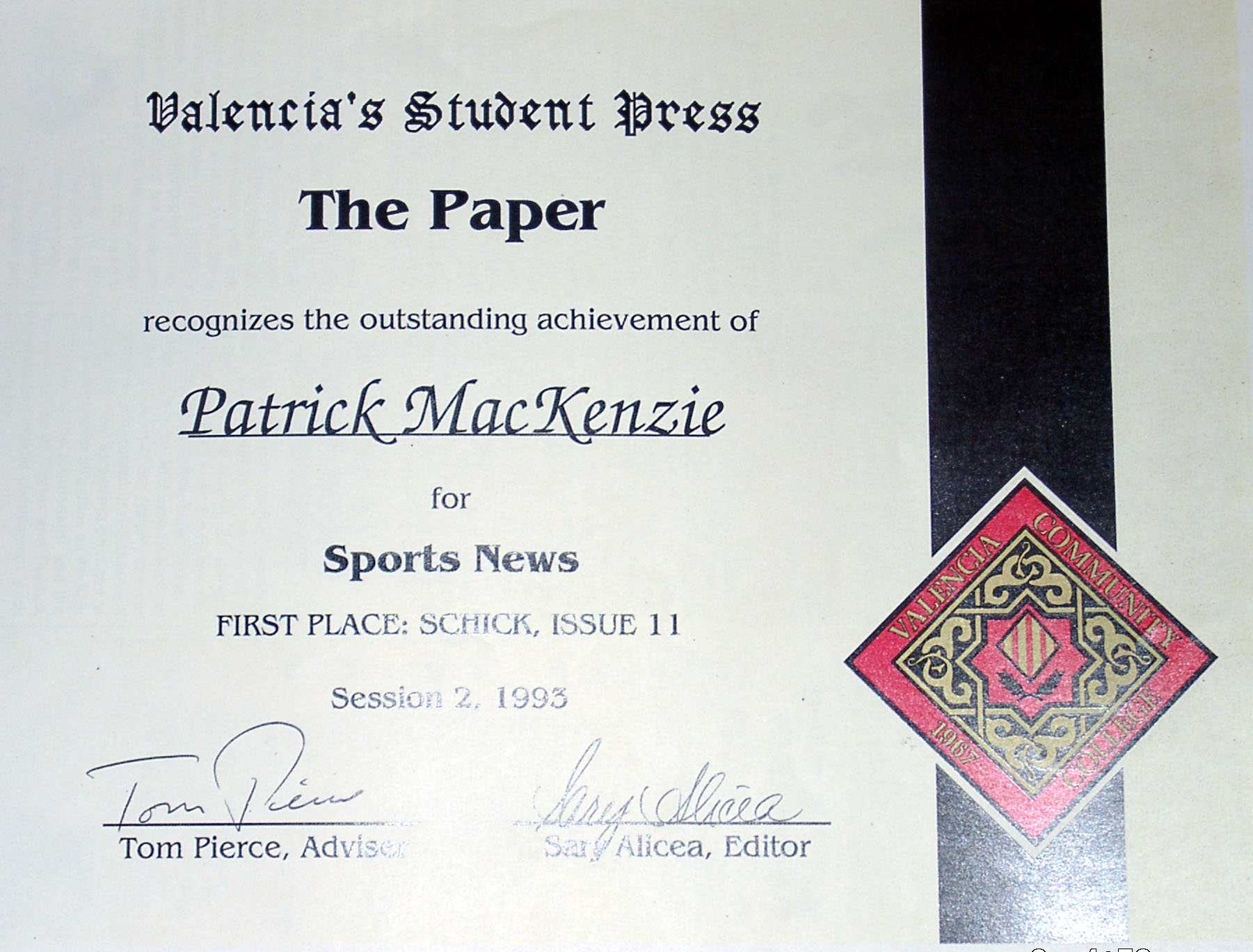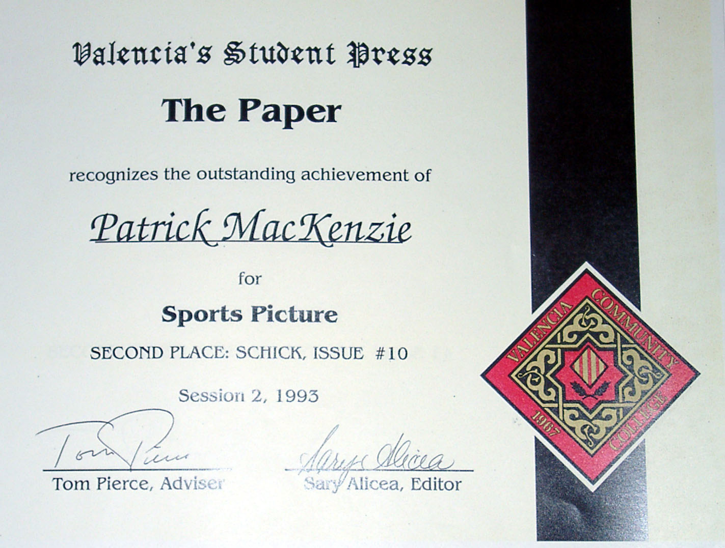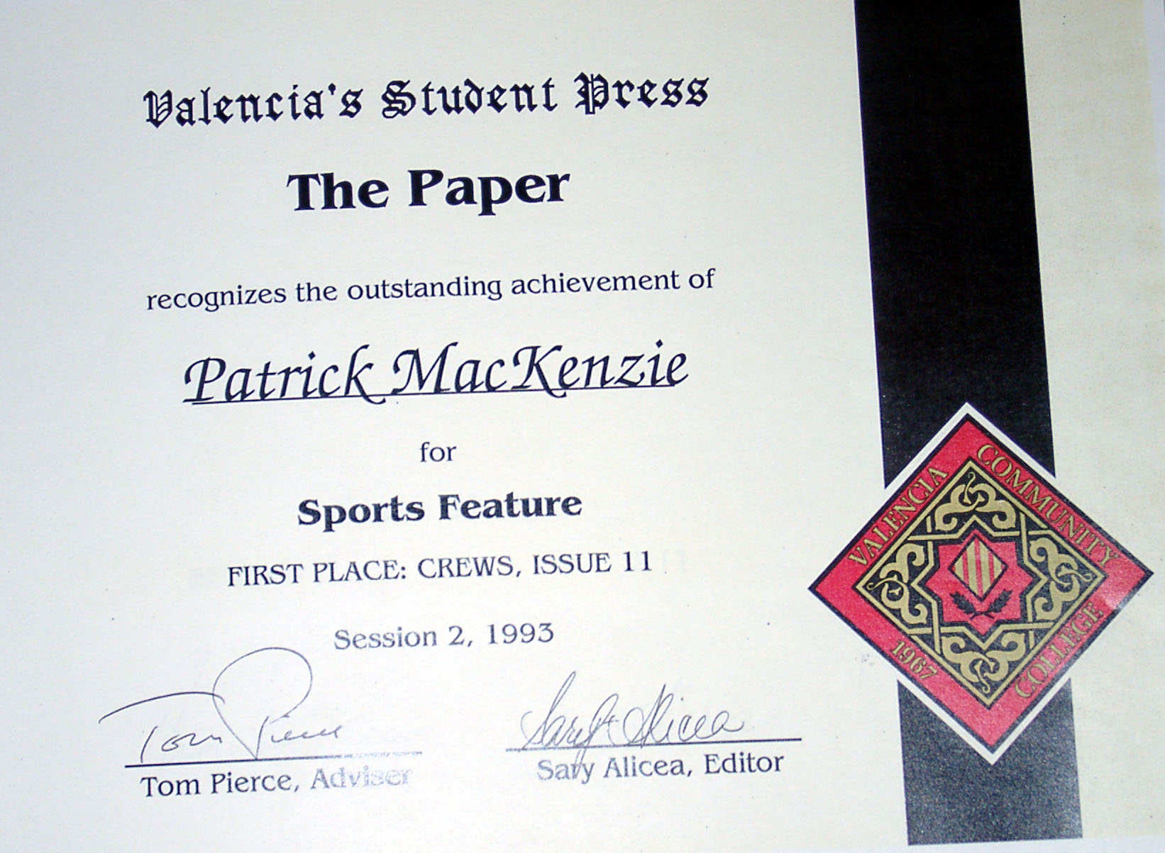 First Place: Sports Feature (1993) -- Valencia Community College |