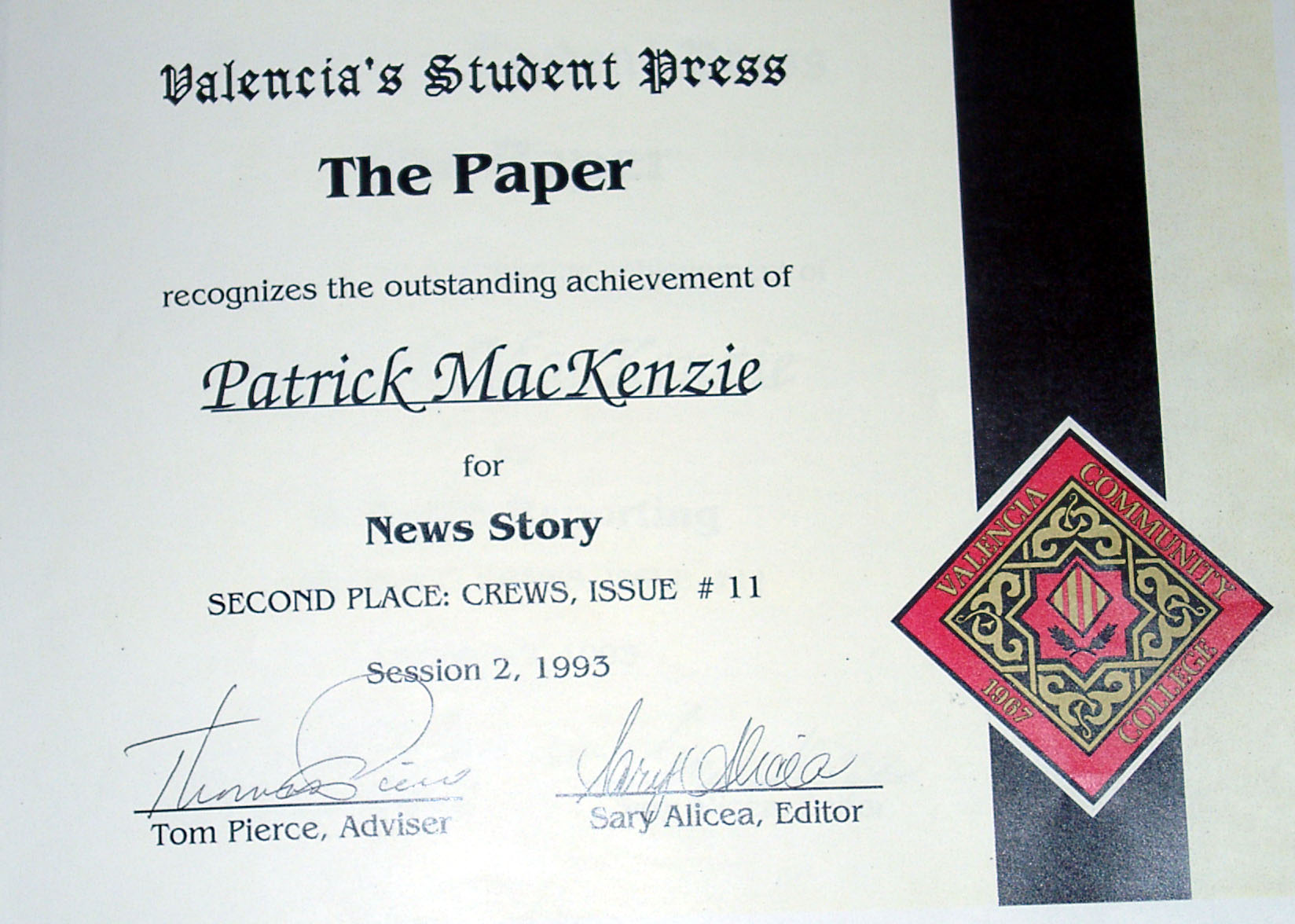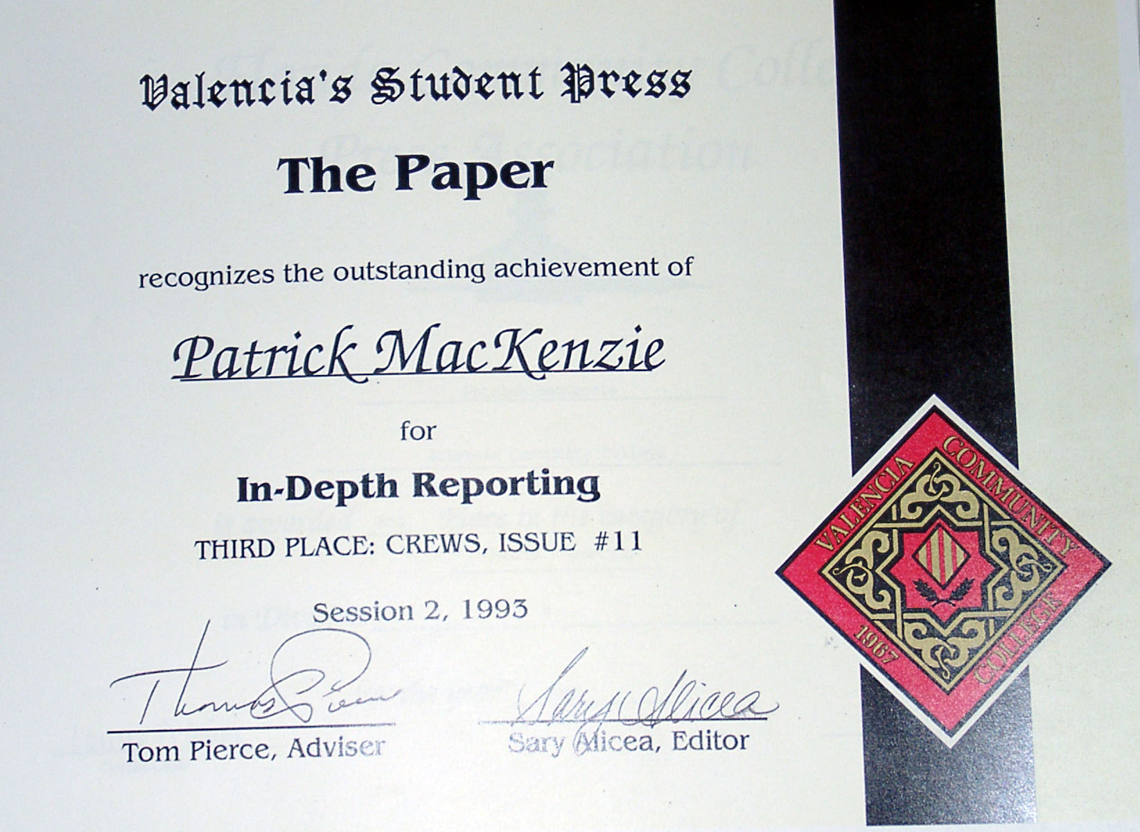 Third Place: In-Depth Reporting (1993) -- Valencia Community College |