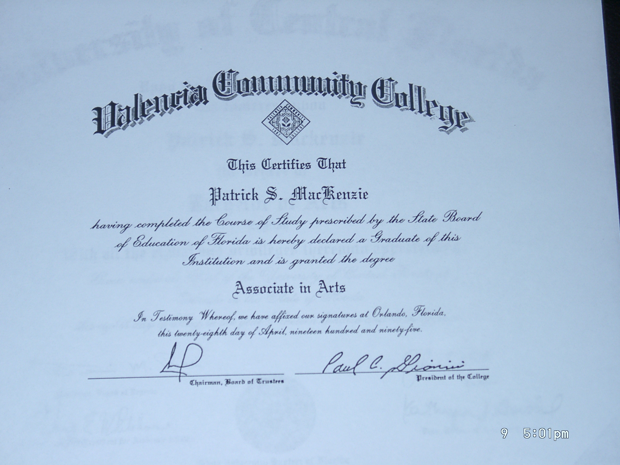 Student Award For Outstanding Achievement (1993) -- Valencia Community College |
