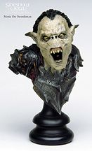 $49.99. This amazingly detailed 1:4 scale bust has been hand cast in heavy weight polystone and hand painted to the highest standards. This bust sits on a classically turned base that includes Orc Swordsman's name and the sculptor's signature. Standing 7 inches tall, this statue is produced by Sideshow Toys and the Weta Workshop - the Special Effects Company that created the effects for all three "Lord of the Rings" films. From Sideshow/WETA's Lord of The Rings Series 1.