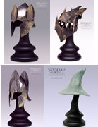 $89.99. From Sideshow/WETA's Lord of The Rings Series 3. These cast metal helms (helmets) are exact 1:4 scale miniatures of the helmets used in "Fellowship of the Ring," the first film in the Lord of the Rings Trilogy. They have been expertly recreated by the same metalsmiths who made the full scale pieces for the films. Each sits on a classically turned pedestal tha includes the name of the helm and the sculptor's signature. This set includes 4 helms: 1x Elendil's Helm, 1x Moria Orc Helm, 1x Isildur's Helm and 1x Gandalf's Hat.