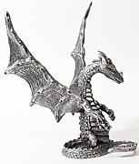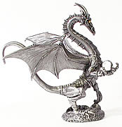 $24.99. Rawcliffe presents this high-quality pewter Silver Dragon figurine. The dragon holds a "crystal" ball and features faceted gem-like eyes. Stands 3.5 inches tall and 3.5 inches wide. Hand crafted and made in the USA.
